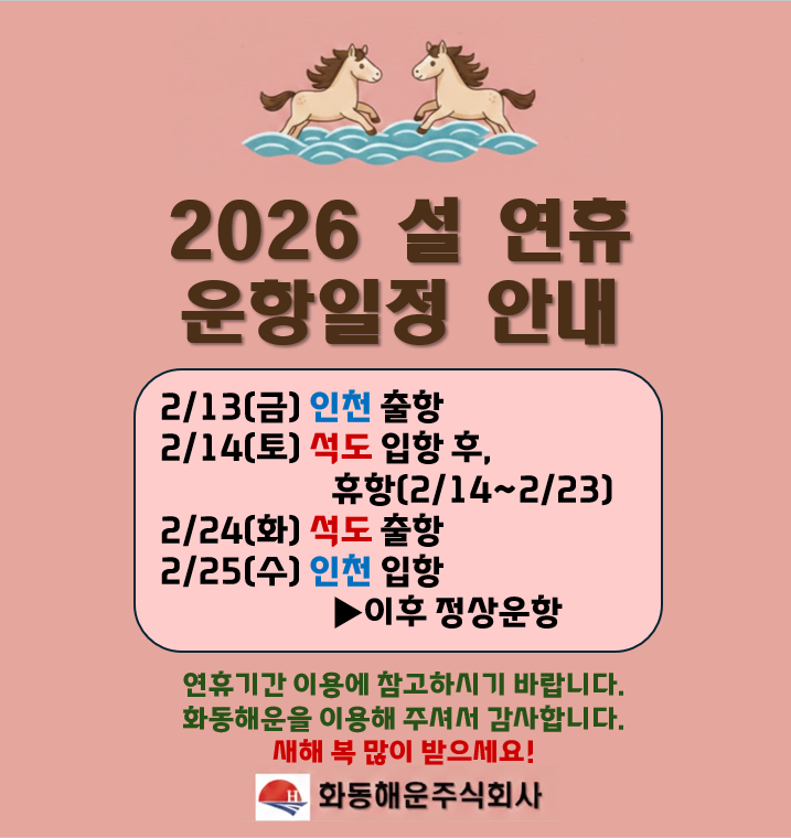 | 제목 | 2026년 설 연휴 여객스케줄 안내 | ||
